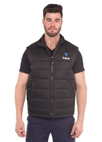 Colete confeccionado em tecido Nylon Repelente a água, com zíper frontal e bolsos de lapela.