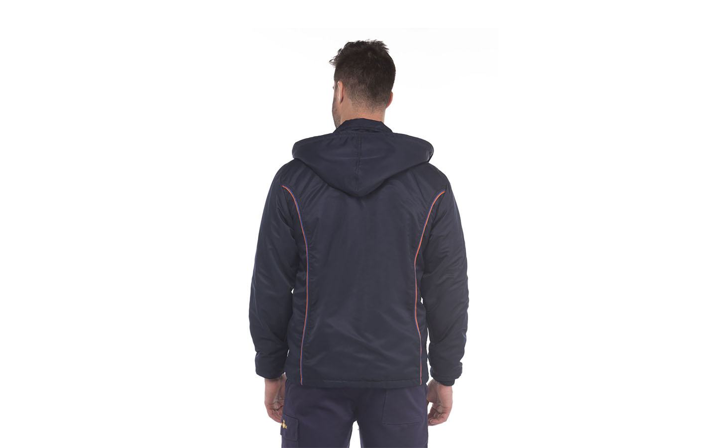 É totalmente impermeável, possui capuz destacável e pode ser utilizada no dia a dia ou a trabalho.
