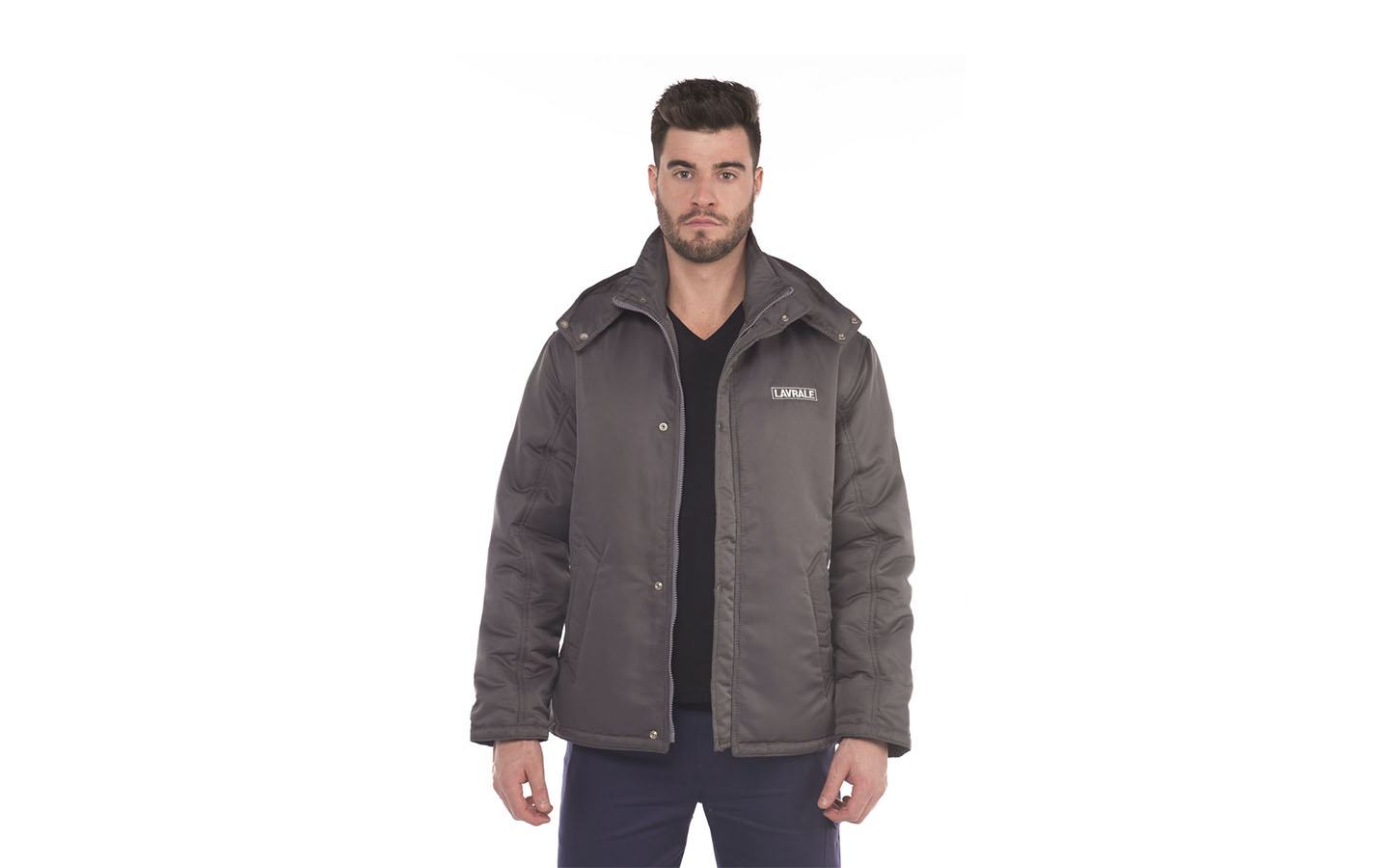 Jaqueta confeccionada no tecido Nylon Plus, repelente a água, capuz destacável, acolchoada com manta térmica (Fibra) e é disponível com duas cores.