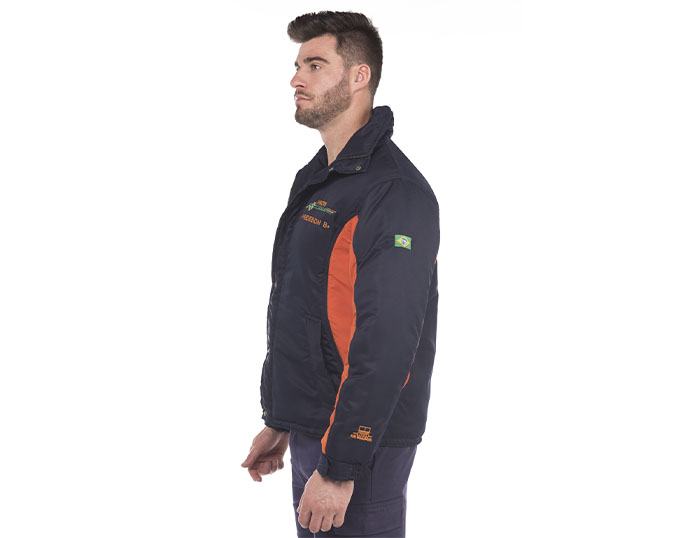 Jaqueta confeccionada em tecido Nylon Paraquedas, acolchoada com manta térmica (Fibra), disponível em até duas cores e com punho de elástico.