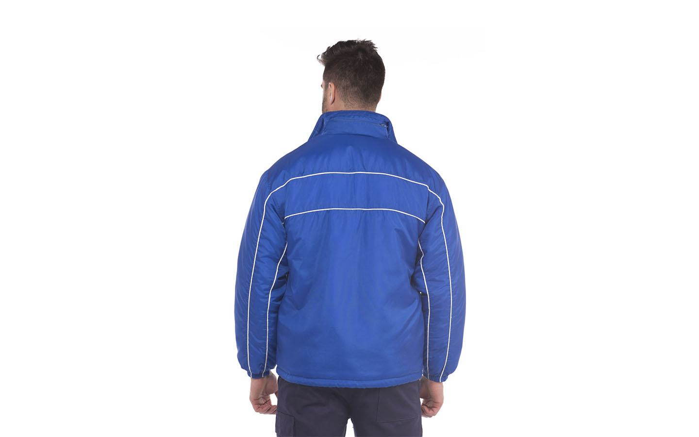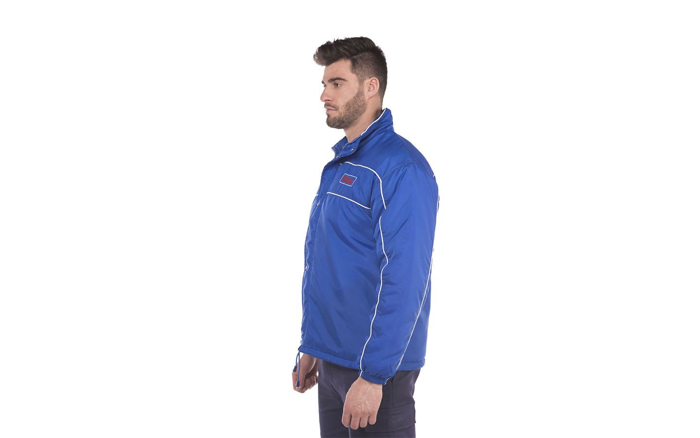Jaqueta confeccionada em tecido Nylon Paraquedas, acolchoada com manta térmica (Fibra). Também possui recortes, vivo (Filete) e punho de elástico.